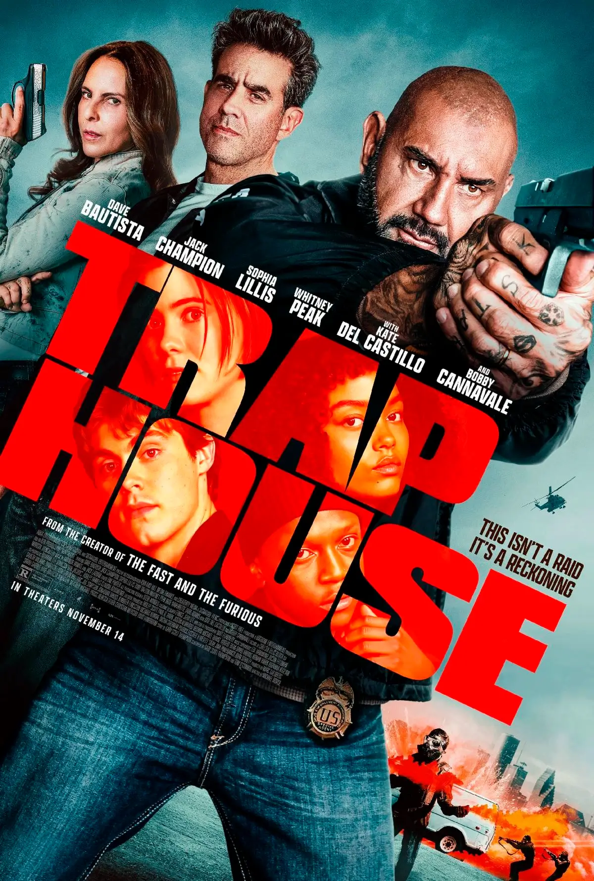 Pôster de Boca de Fumo (Trap House) com Bobby Cannavale, Kate del Castillo, Dave Bautista, Zaire Adams, Jack Champion, Sophia Lillis e Whitney Peak.