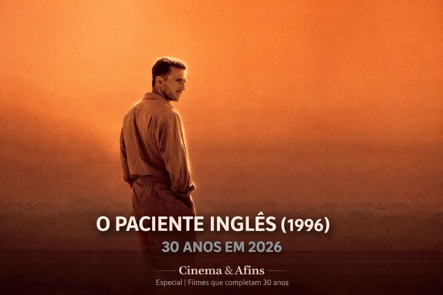 Ralph Fiennes em “O Paciente Inglês” (1996). Dirigido por Anthony Minghella, o romance épico conquistou nove Oscars, incluindo Melhor Filme, e completa 30 anos em 2026